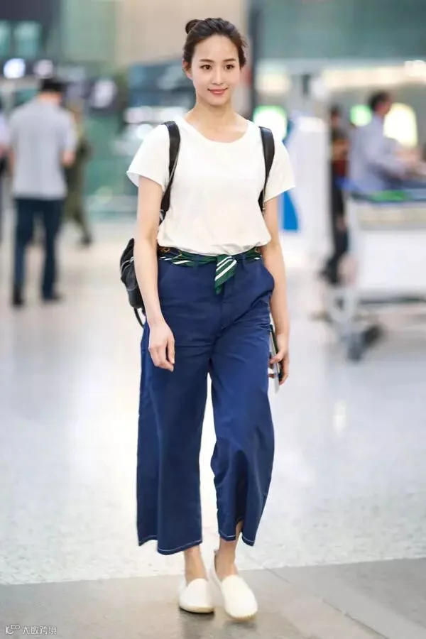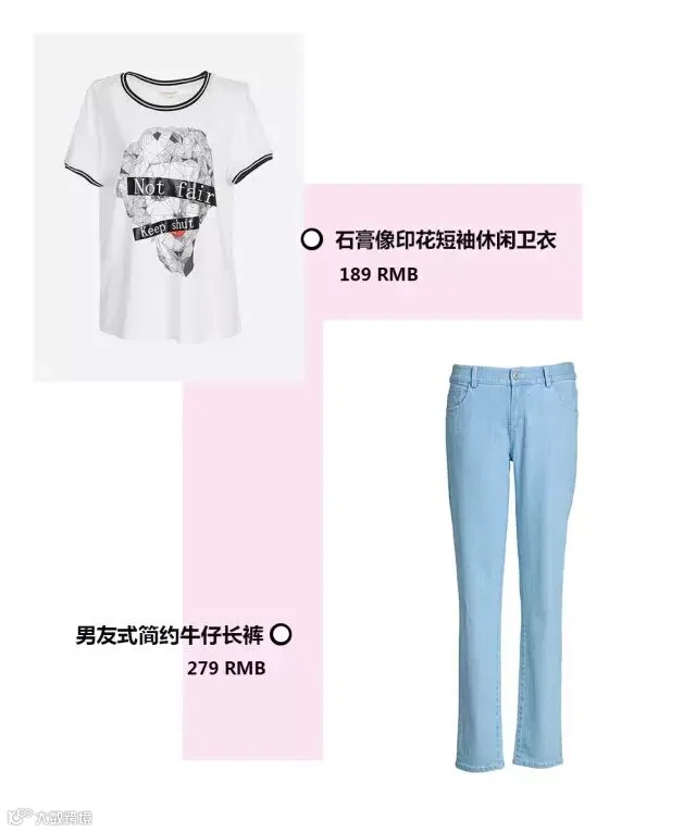 淡蓝+白,清新亮丽!简约的裤装,配上亮点满满的T恤,低调却吸睛~如此装扮出行的话也巨方便(关于身材方面也没有太大的局限)