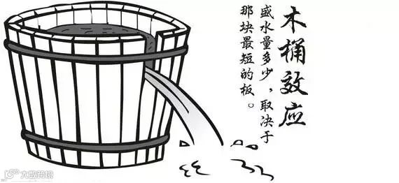 木桶理论认为:木桶装水的多少,不是取决于最长的那块木板和所有木板的平均值,而是取决于最短的那块木板。