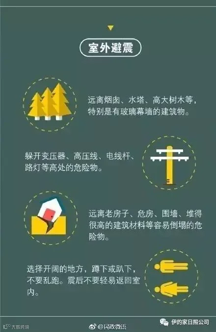 地震发生后,慌慌张张地向外跑,碎玻璃、屋顶上的砖瓦、广告牌等掉下来砸在身上,是很危险的。此外,水泥预制板墙、自动售货机等也有倒塌的危险,不要靠近这些物体。如果你站在门框下,当门框向前或向后倒下时,你会被头顶上的屋顶砸伤。如果门框向侧面倒下,你会被压在当中,所以,不管怎么样,你都会受到致命伤害!