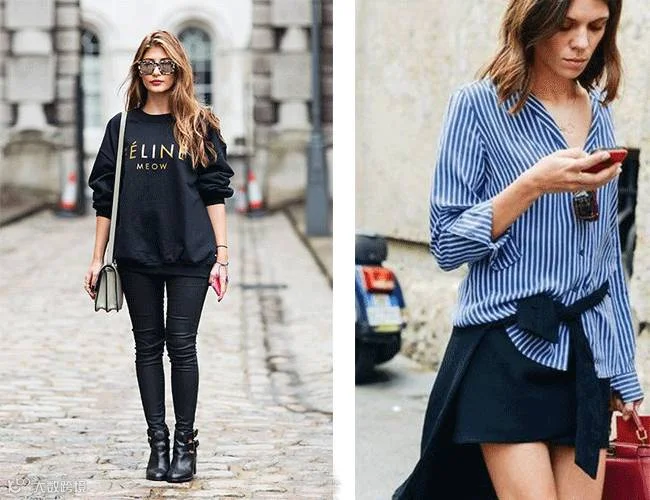 此类身材主要将注意力从身体中部移开,遮住上半身的肉肉,重点突出修长的美腿