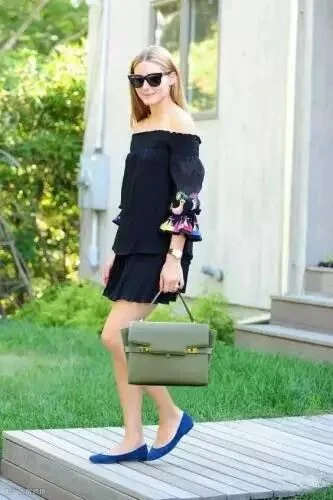 ▼上身选择露肩装、一字领、厚肩小外套等都可以在视觉上拉伸肩颈比例,把小肩显得宽一点。