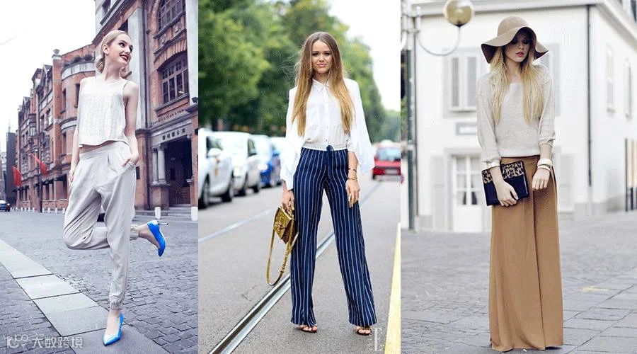 ▼下装的话,深色阔腿裤、直筒裤、收腰连体裤都是不错的选择,一定要拒绝挺括的裤子。
