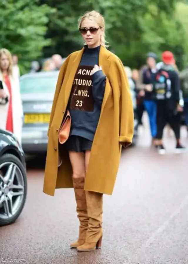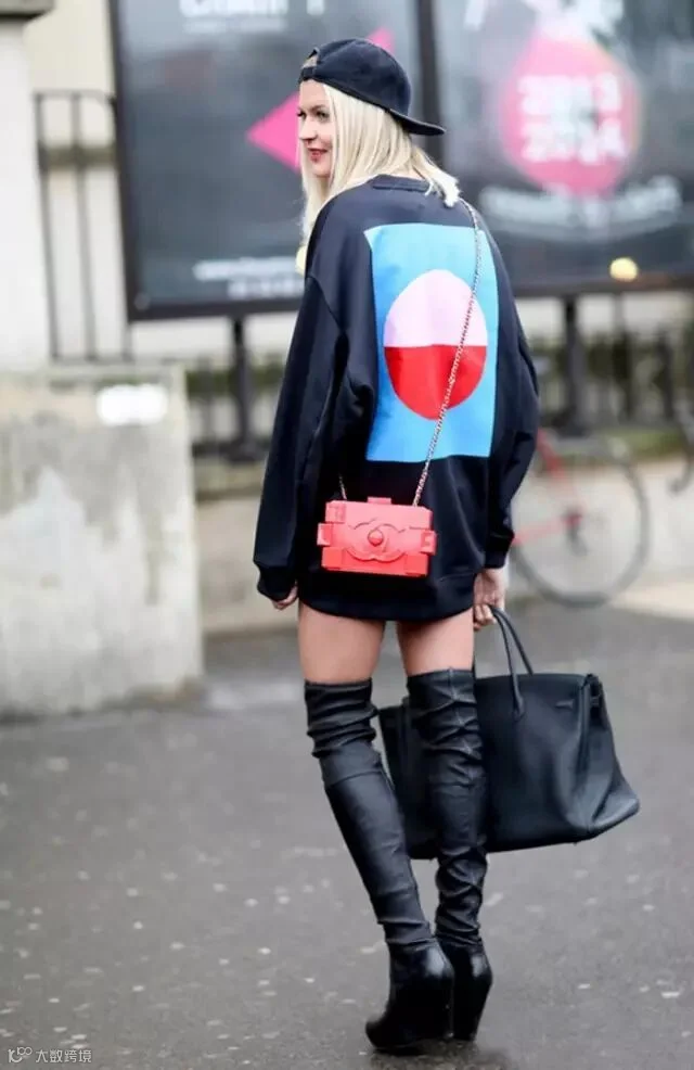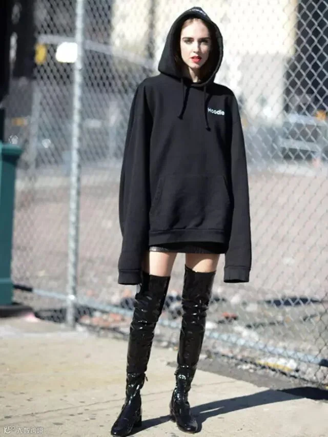 卫衣+长靴,“下腿失踪法”,见腿不见手
