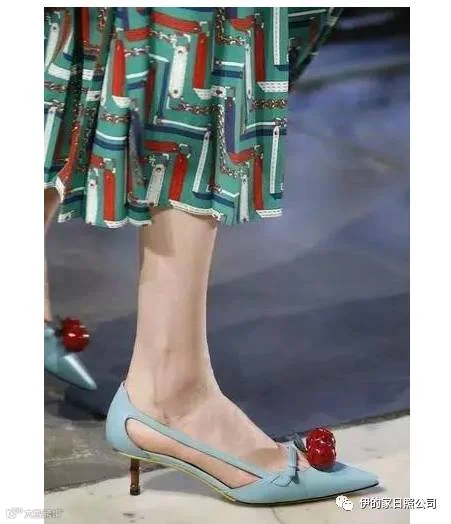Gucci的这款猫跟鞋少女心十足,水果的装饰搭配今年最流行的尼加拉蓝,不要太好看,柱子的鞋跟更别有一番风情。