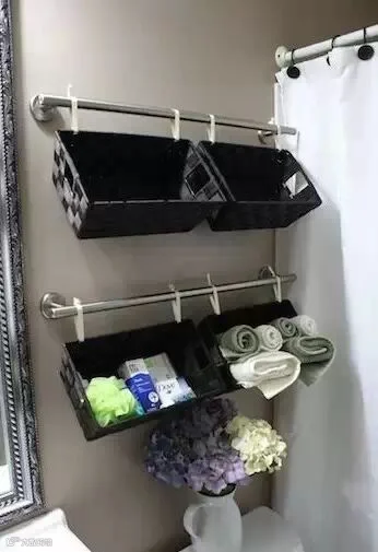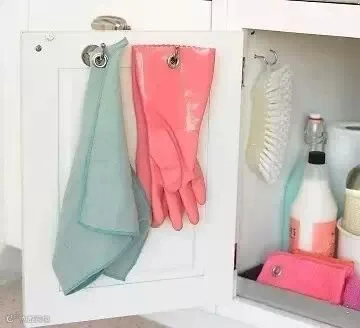 如果你的卫生间里有柜子,那里面的乾坤可要好好斟酌,柜门背后是一定要好好利用,比如横杆。
