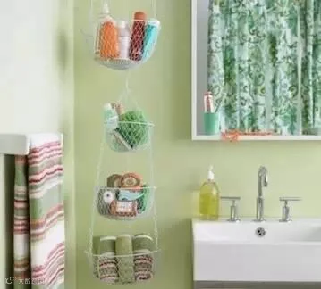 没有地方放毛巾,其他物品,做一个这样的吊篮会很能盛放东西,根据需要可以多摞几个。