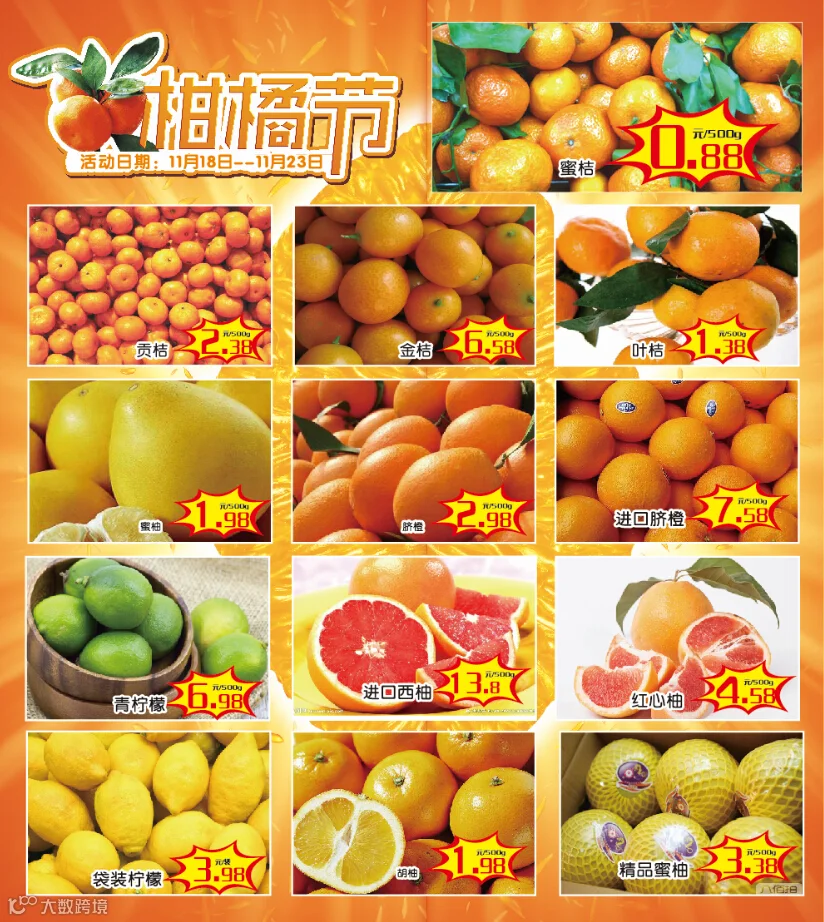 干果节、柑橘节、海鲜节(天天超市内)