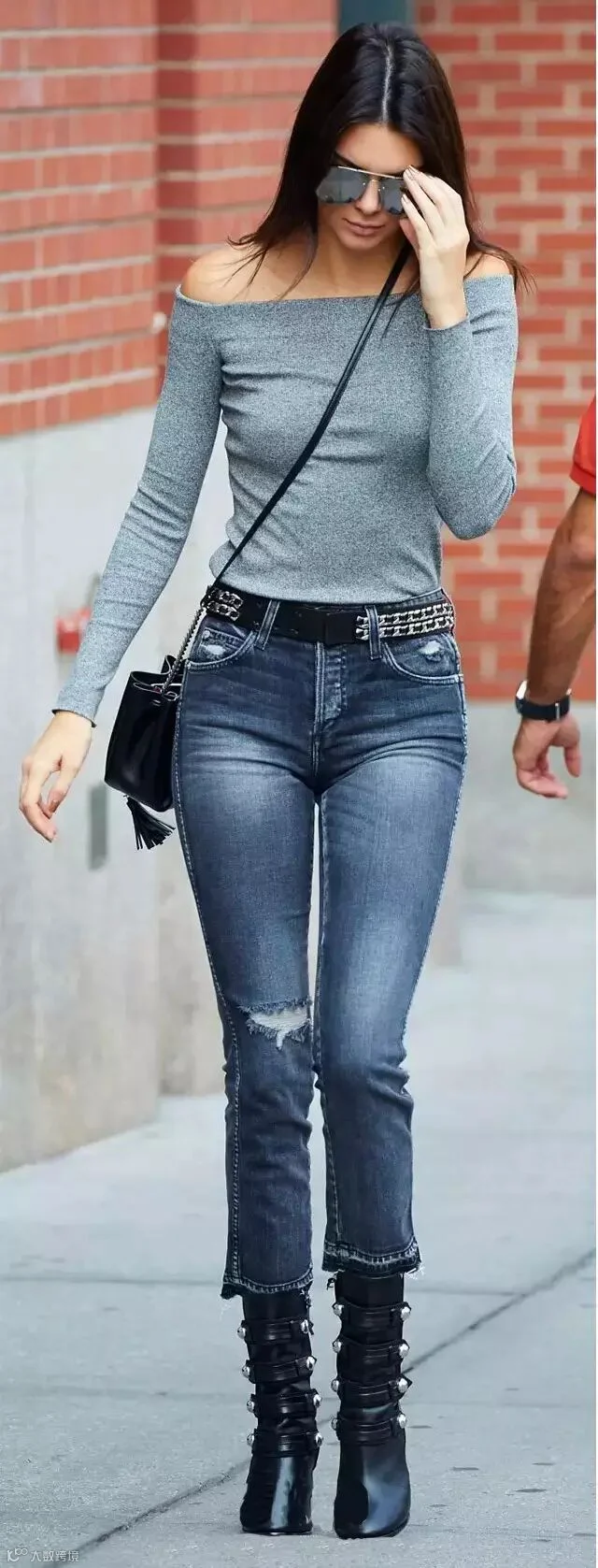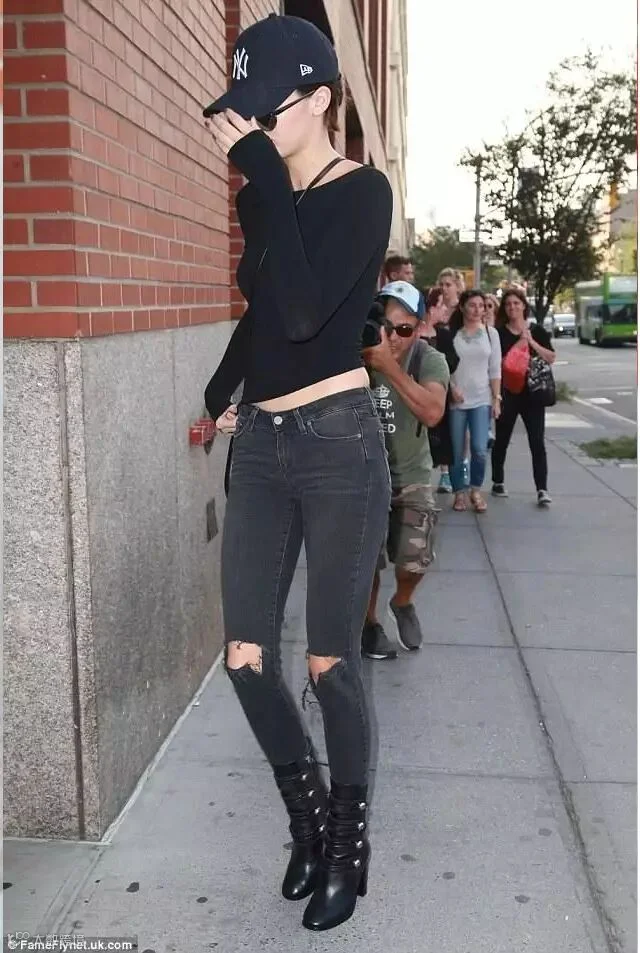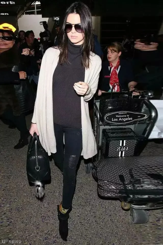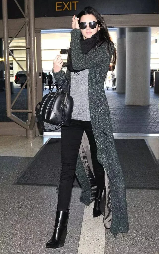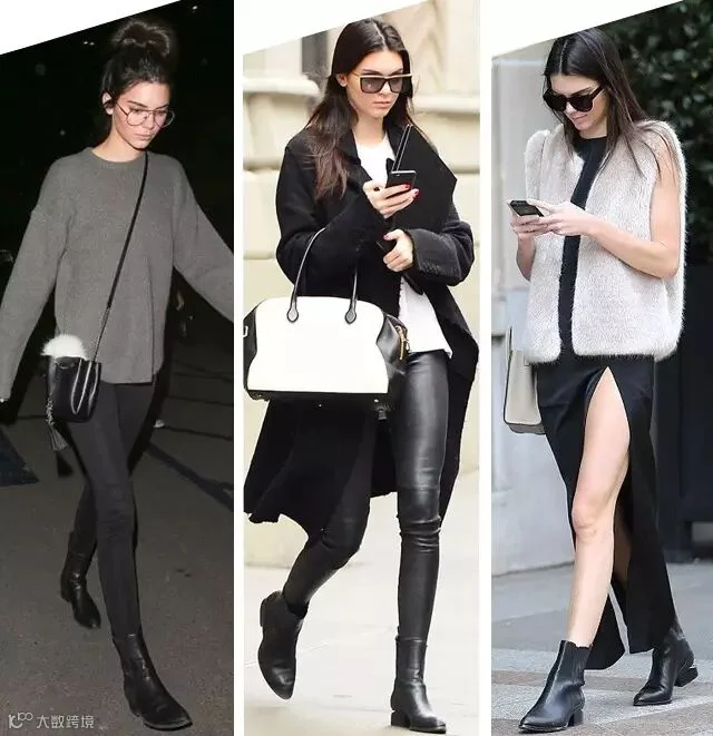 看了这么多金小妹绝对是个不折不扣的短靴控!在这个换季时节想要穿出大长腿,黑裤子配黑短靴一定是个不错的选择。像Kendall Jenner这样用紧身黑裤搭配短靴,让整个LOOK充满了时髦摩登感。