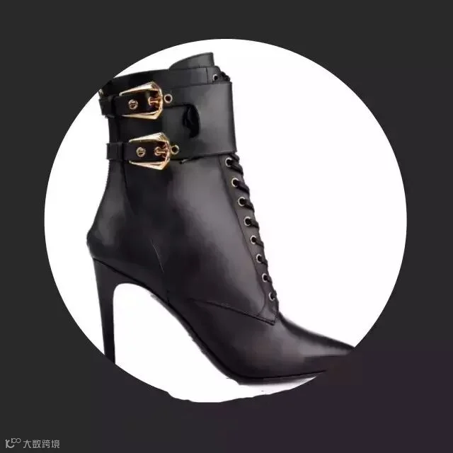 Balmain这款踝靴采用柔软的黑色皮革制成,配有环绕式踝带。它配有时髦的尖头造型和闪亮的金色缀饰,鞋跟处则饰有亮面皮革拼接料,对比的材质纹理设计细节颇有画龙点睛之效。不妨在白天为这款百搭鞋履搭配紧身牛仔裤,打造利落装束;晚上则换上中长连衣裙,散发时髦的女性魅力。