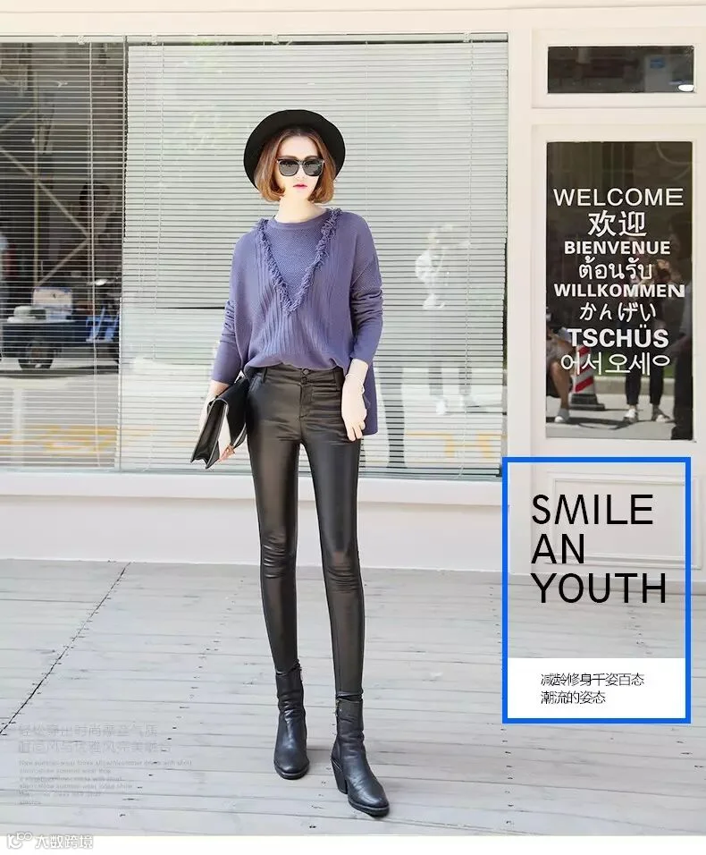 黛恩2015秋冬柔软弹力两粒扣皮裤加绒保暖小脚铅笔裤,黑色,11月18日低调上市,亲们请关注商城的上新,价格绝对的让你吃惊!