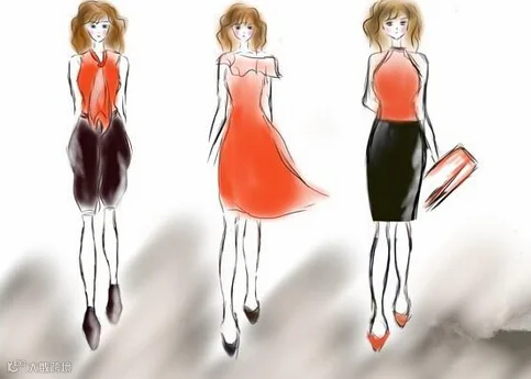 不可以穿的衣服:紧身喇叭裤(见图一中间),过膝裙,中分裤(见图三)。