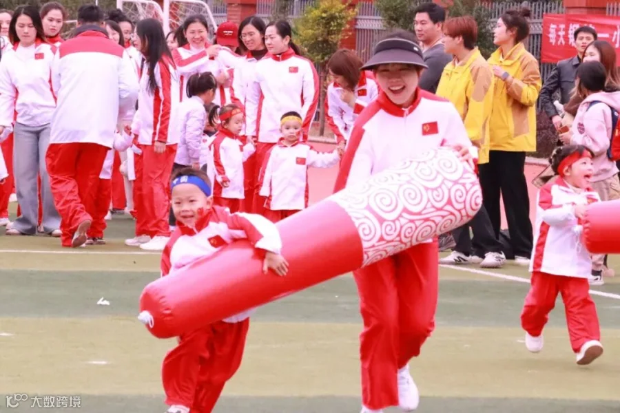 亲子接力赛趣味开场啦!家长和宝贝们接力奔跑,配合默契,欢笑声不断,赛场满是浓浓的亲情与欢乐呀。