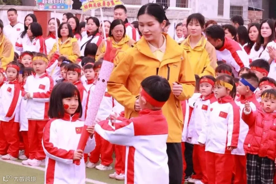 大四班的孩子们手擎火炬,步伐坚定又充满朝气地传递着,那神圣的火种最终由园长点燃,瞬间,熊熊燃烧的圣火照亮了整个场地,也点燃了所有人心中的热情之火呀。