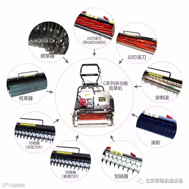 爱莱特C系列多功能果岭剪草机是一款综合性的果岭养护设备,可装配9种功能附件,实现了一机多用,大大节省了高尔夫球场购买设备的成本!