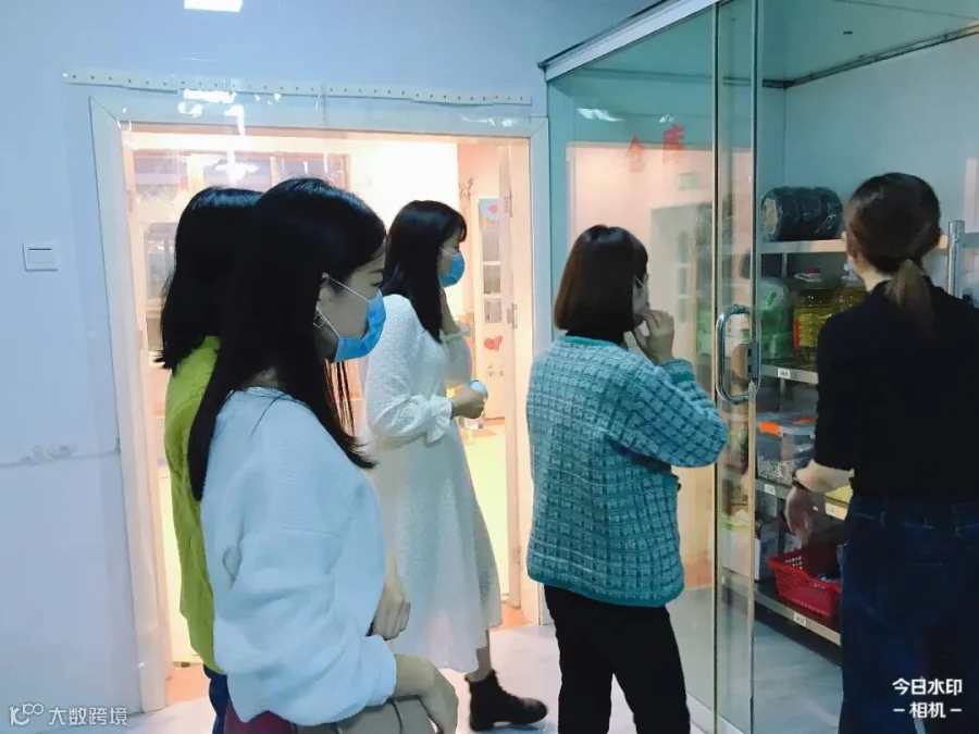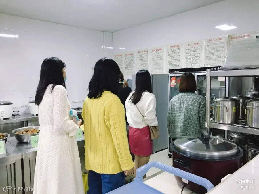 家长代表们一起走进后厨,观看食堂的布局和设施设备、带量食谱制作以及厨房日常运作的各项流程。