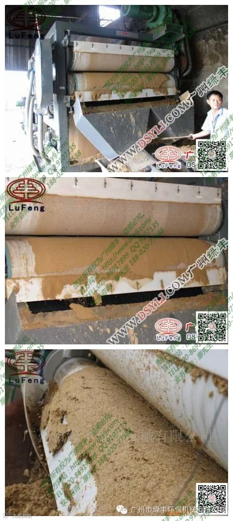酒渣,木薯渣发酵消耗大部分淀粉,保留了大部分蛋白质氨基酸,再经发酵后可生产高蛋白畜禽饲料,利用广州绿丰带式压滤设备脱水后,虑饼可直接再次利用生产蛋白饲料,图为青岛啤酒采用我公司设备处理剩余酒渣现场图。