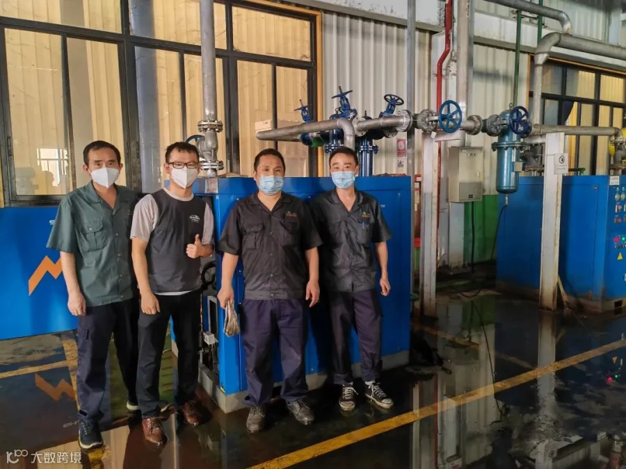 从河内到胡志明市,再从胡志明经10几个小时的周转到达热电厂项目地,现场20多台我司设备,有的已长达10年机龄,轰隆隆的在闷热陈旧的机房里运转,我们的服务工程师从显示屏露点、温度等数据再到阀门、压缩机、末端含水量、电排等一一进行检修,确保电厂能够稳定和高品质地用气。等所有设备检修完毕,服务工程师早已汗流浃背。