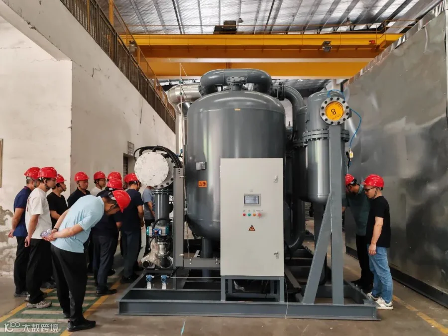 交流结束后,技术专工带领优耐特斯全体人员参观了生产车间,在现场,大家可以近距离观摩我司冷冻类、吸附类等产品的设备构造及工艺流程,对山立产品的高品质与高性能有了更直观的感受。