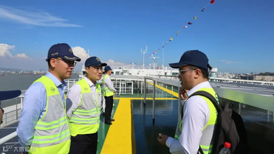 随后,全体人员参观“远海口”轮,据悉,该轮是船技工程公司监造的第3艘7000车LNG双燃料PCTC汽车运输船,是全国最大光伏能源+LNG双燃料汽车船,同时也是广州远海汽车船运输有限公司订造的7000车PCTC系列船的首制船。从参观的过程中了解到,船技工程通过多源通信打破船岸数据交互屏障,确保船舶在不同环境下的高效、可靠通信;并在 “远海口” 轮监造过程中践行绿色理念,采用光伏系统、岸电等技术,响应双碳战略,助力航运低碳转型;此外,“远海口”轮还搭载了船技工程开发的国内首例PCTC实配装载软件,通过船舱内“一车一码一位”的精准定位,为船舶火灾防控管理提供了安全高效的技术支撑。