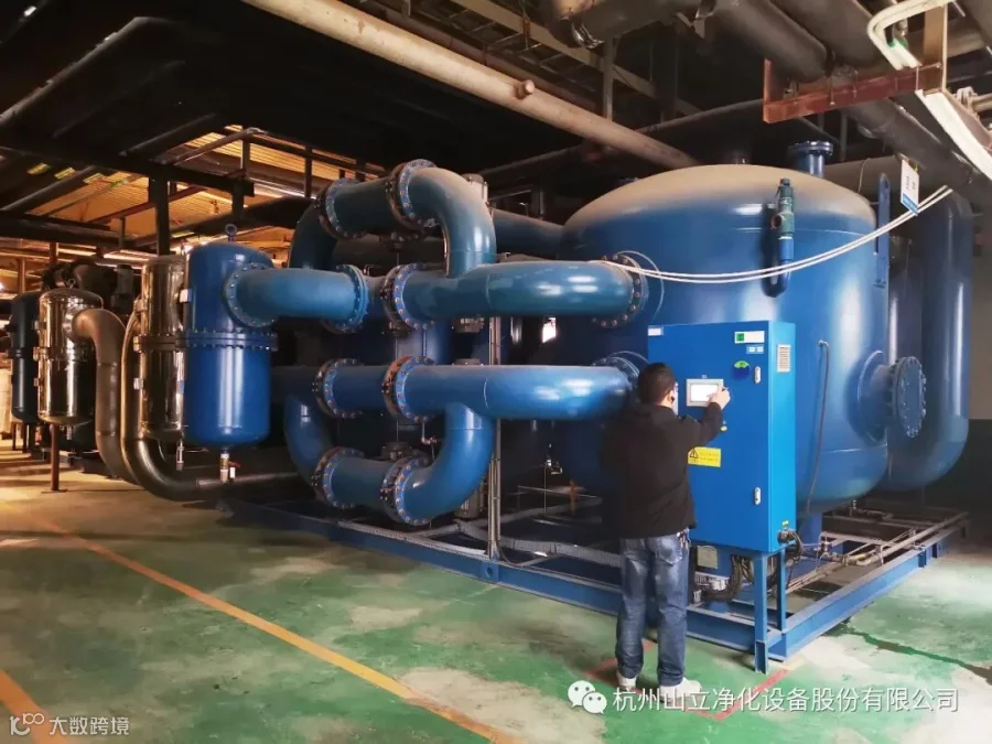 正是在这种向上的氛围引导下,终于迎来了振奋人心的好消息。杭州山立净化设备股份有限公司与华天科技(西安)有限公司签订500Nm³/min的全自动余热零气耗压缩空气干燥机。在疫情期间能签此大单实属不易,一方面说明我们销售工作做得出色,另一方面也说明客户对我们产品的认可。以下是客户现场发回的设备图片。