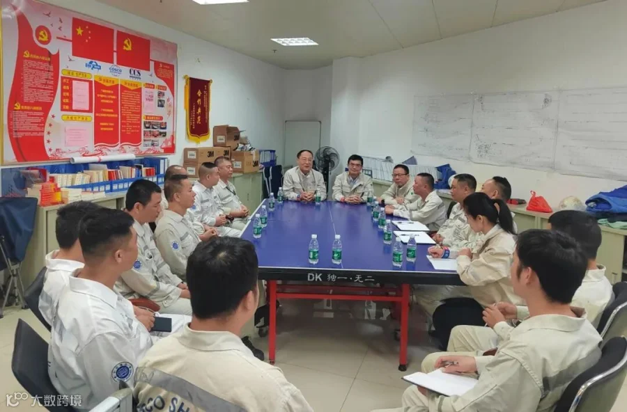 广州中远海运船舶技术工程有限公司董事长、党委书记姚勇,财务总监刘一乐等一行前往公司驻广船国际监造组开展调研座谈。