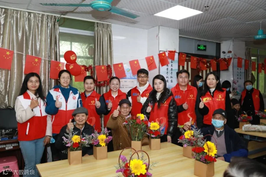 除了插花与唱歌,志愿者们还与长者们进行了深入的交流。他们倾听长者们讲述过去的故事,分享生活的点滴。这些看似简单的互动,却在不经意间搭建起了一座座心灵的桥梁,让爱与温暖在彼此之间自由流淌。