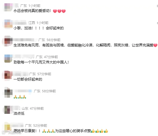 消息迅速传开。骑手们有的送完单顺路赶来,有的提前收工只为多陪小黎一会儿,还有人带来牛奶、零食和故事书。不会聊天的,就安静地坐着、帮忙递水;跑完夜单的,凌晨还绕路来看一眼,又匆匆离去。甚至有远在云南的骑手,通过线上花店送来一束花。