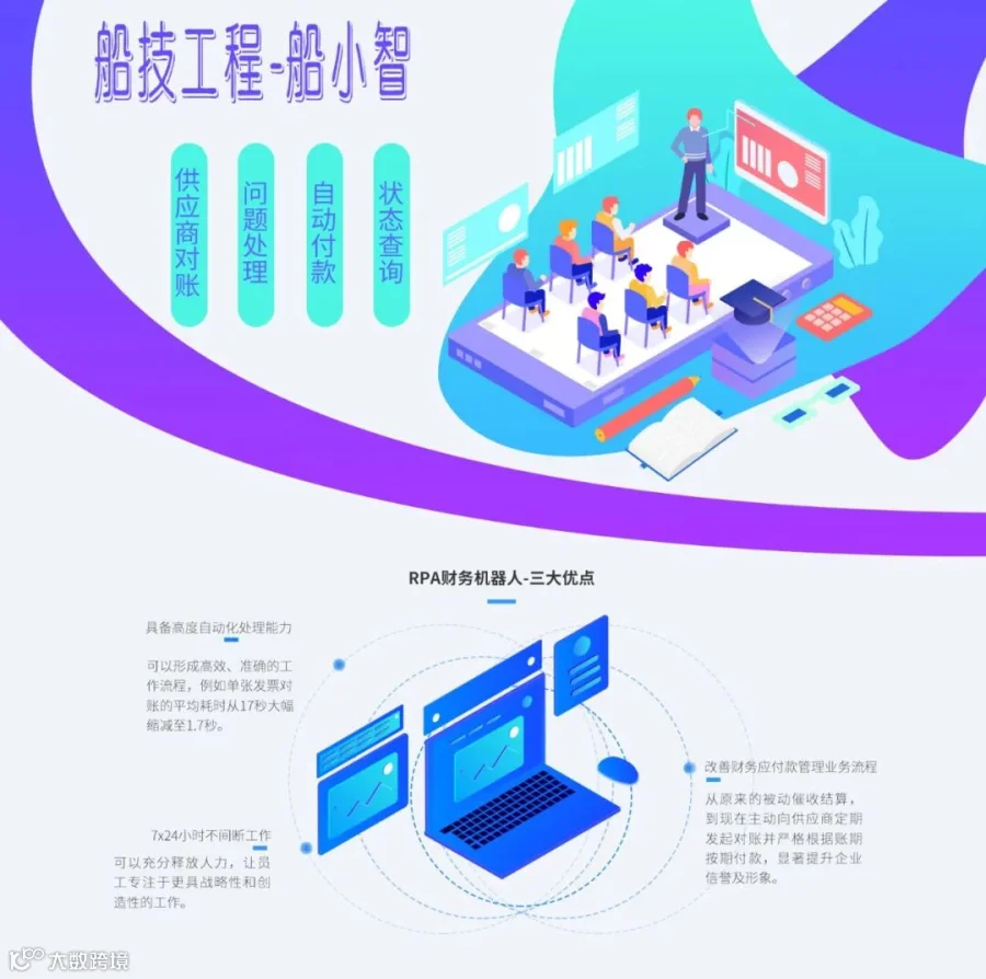 作为公司的首位数字员工,“船小智”覆盖供应商对账、问题处理、自动付款、状态查询等多个业务场景,可以代替公司的财务人员精准、快速地执行海量重复性任务,在助力公司提升业务处理速度与准确性等方面发挥作用。
