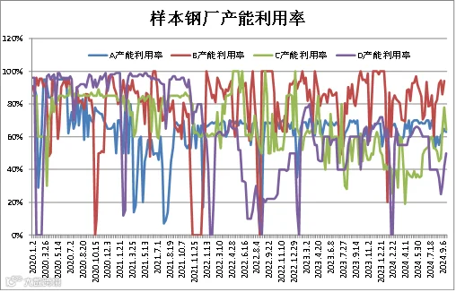 (9月14日-9月20日)四川省钢材流通协会对四家样本钢厂关于建材产能利用率统计数据显示,样本钢厂B和D较上周分别上调8.24%、8%;样本钢厂A和C较上周下调2%、14%。