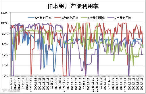 (8月2日-8月8日)四川省钢材流通协会对四家样本钢厂关于建材产能利用率统计数据显示,样本钢厂A和B较上周分别下调12%、25.46%;样本钢厂C和D与上周持平。