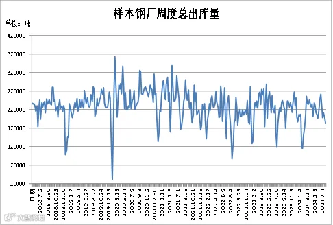 (8月2日-8月8日)四川省钢材流通协会对四家样本钢厂关于建材出厂量统计数据显示,样本钢厂A、B和C较上周分别减少3200吨、12978.21吨、2100吨;样本钢厂D较上周增加4000吨。四家样本钢厂总出厂量为82739吨,周环比减少14278吨。