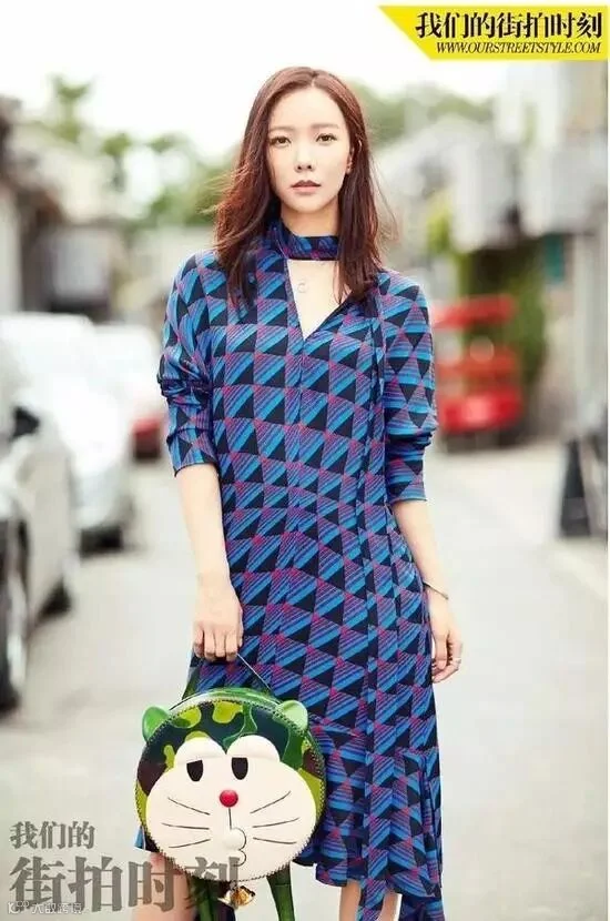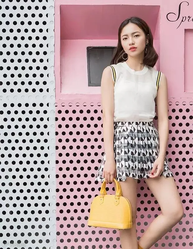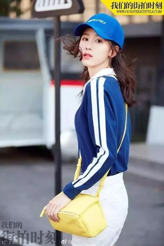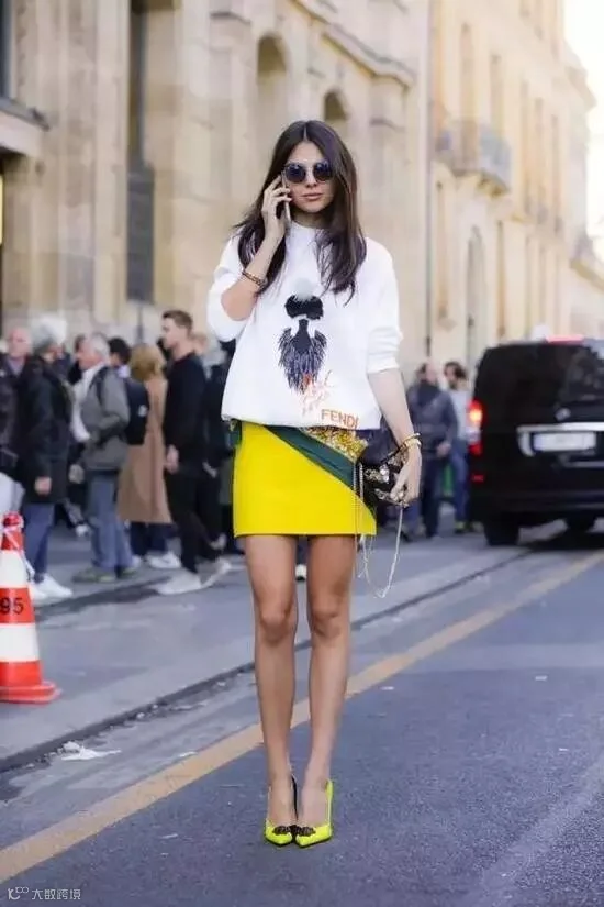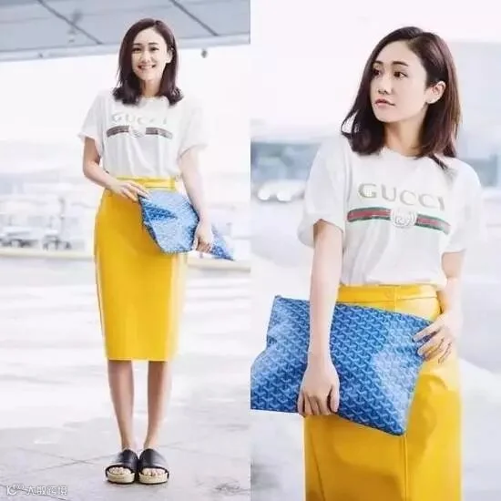 刘芸最新街拍,身穿白色T恤搭配樱草黄半身裙,