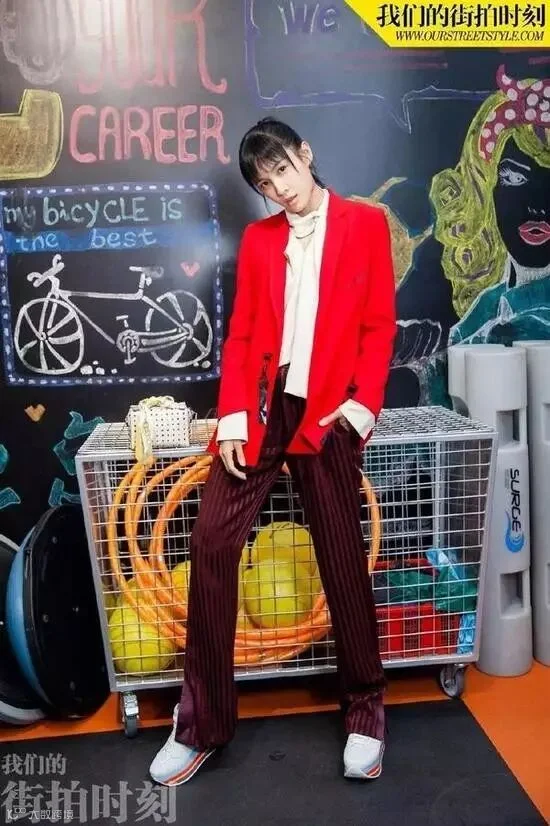 怡宝这身衣服设计感十足,红色是点睛之笔。