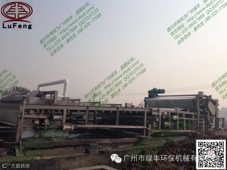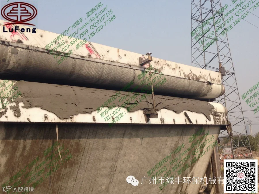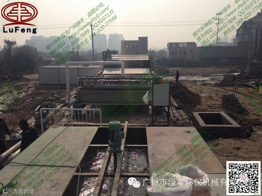广州绿丰带式压滤机的出现将彻底低能高效解决这一问题,每方泥浆处理成本不到一元人民币,24小时连续运行生产,单台最高单日可处理600吨干泥。过滤后的清水可以直接循环利用其他工地用水需求,干泥滤饼可以直接装车运输,方便快捷。下图为某大型建筑工地采用我司DYQ-NP1-2FZ 3M型浓缩压滤脱水机处理泥浆现场,欢迎来电咨询:廖工 188-020-77588