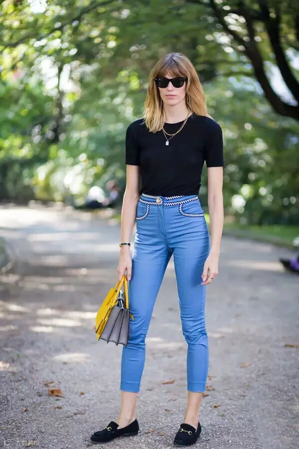 牛仔裤的蓝+上衣的天蓝让你青春无暇。