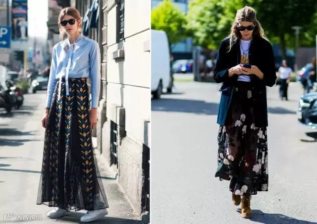 ▼这也是老生常谈的穿法咯~柔美的纱裙搭配衬衫或T恤又不失干净利落之感。