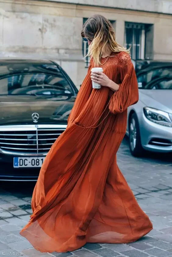 ▼赭石色的纱裙既显白又没有沉闷感,是一种具有高级感的颜色,能够凸显出优雅气质。