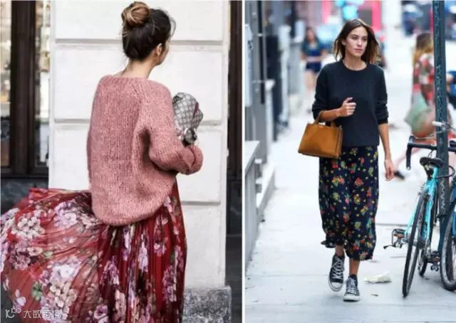 ▼非常适合开春之后穿着,又美又暖,毛衣和裙子选择同色系的看上去更加和谐,又有一种effortless chic的感觉。