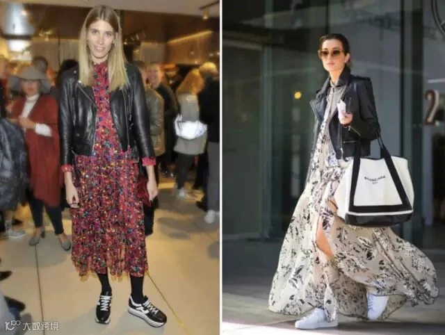 ▼帅气的皮衣和女人味的纱裙,两者看上去风马牛不相及,但是组合在一块却非常赏心悦目,柔美和硬朗的结合体意外地和谐。