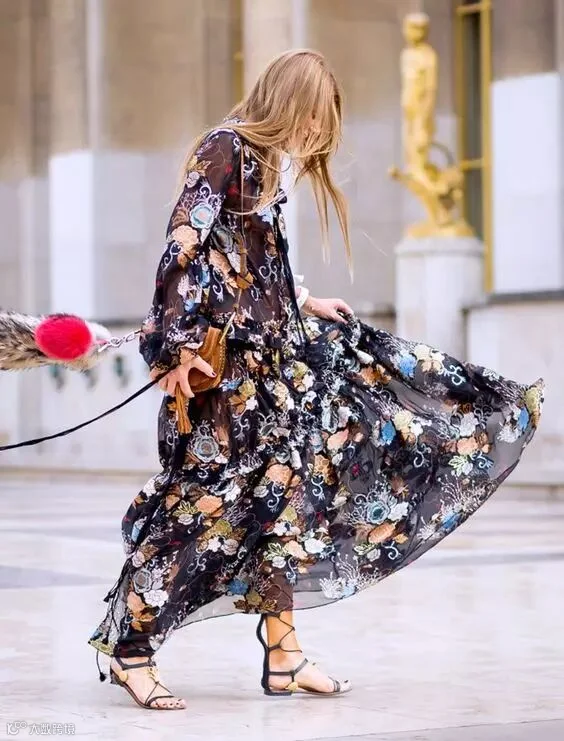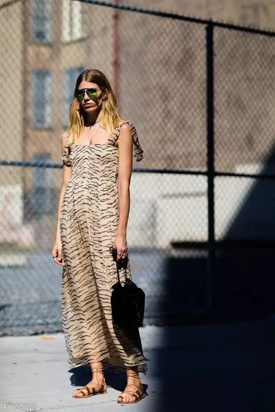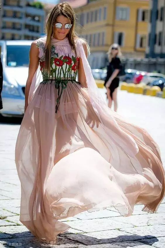 ▼及踝的纱裙搭配罗马凉鞋自有一番自由潇洒的风情,即使你的凉鞋太长,也不用担心小腿看上去像粽子,因为都被挡住啦!