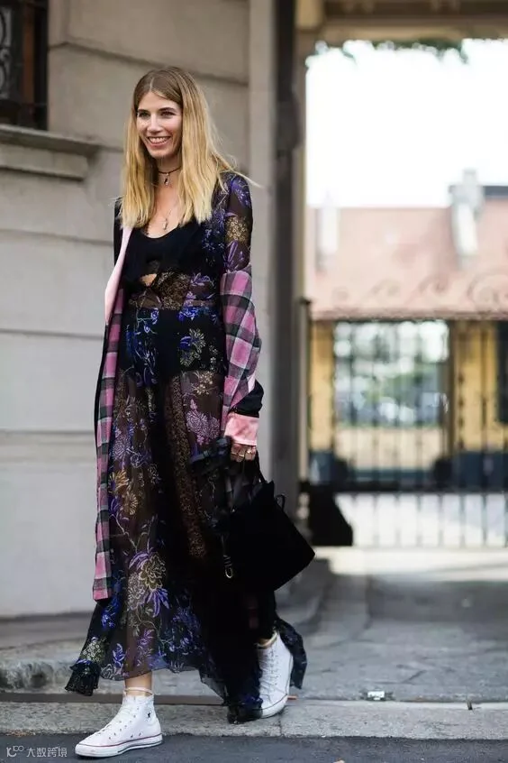 ▼长长的纱裙搭配小白鞋也不违和,反而更显青春活力!