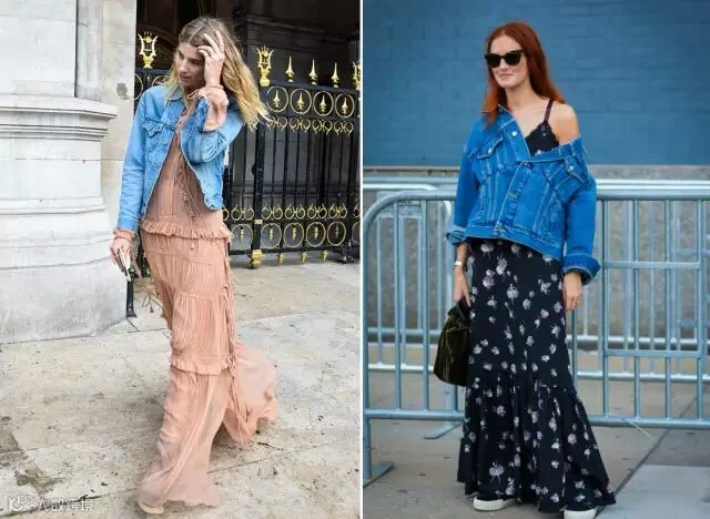 纱裙+牛仔夹克: