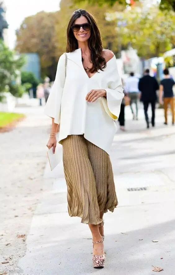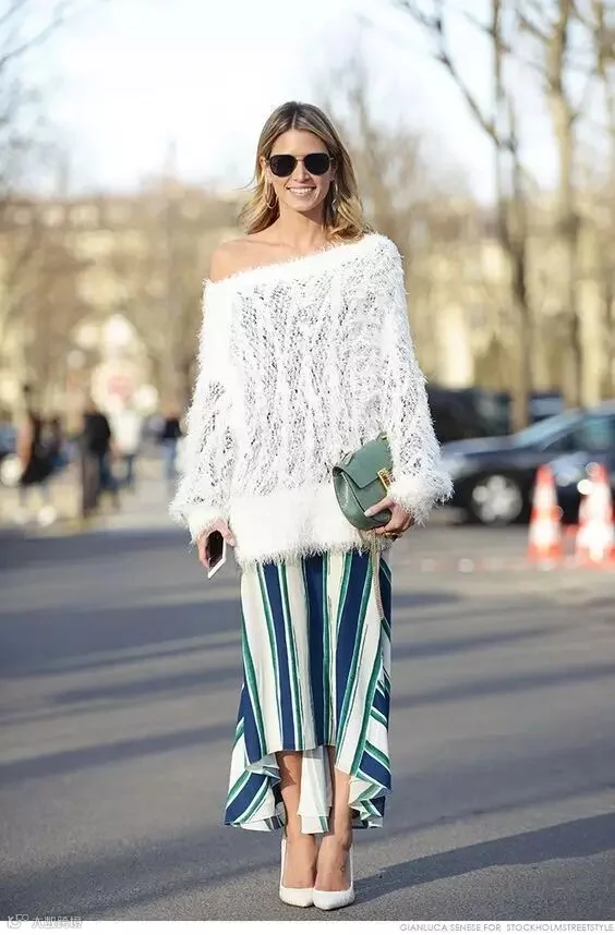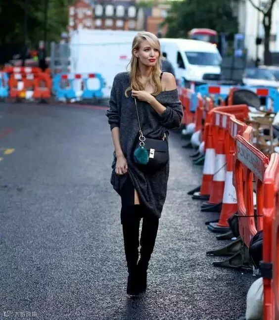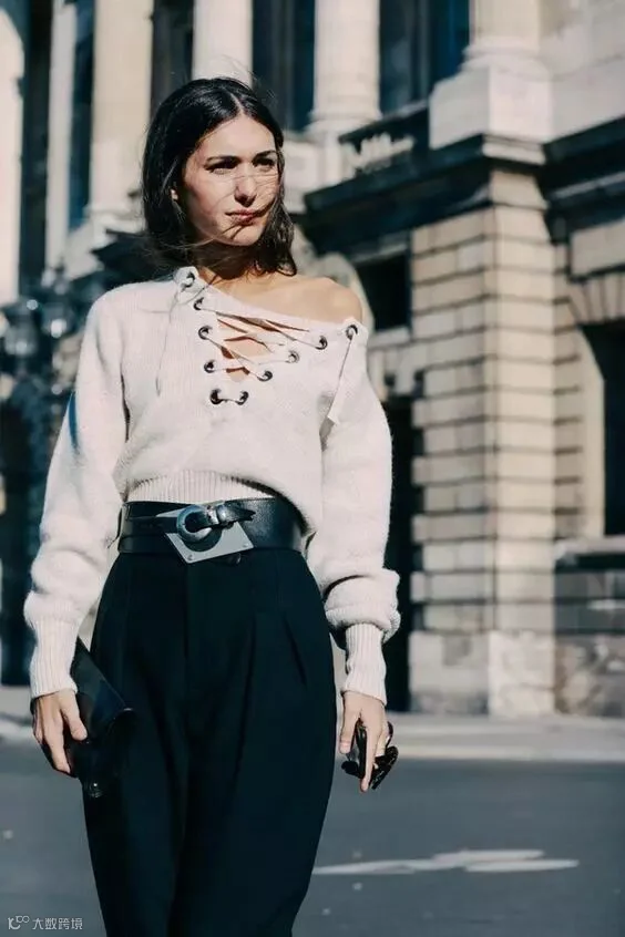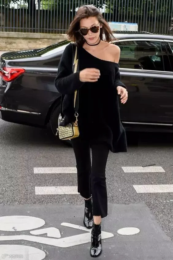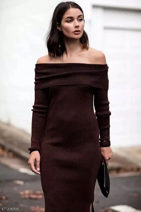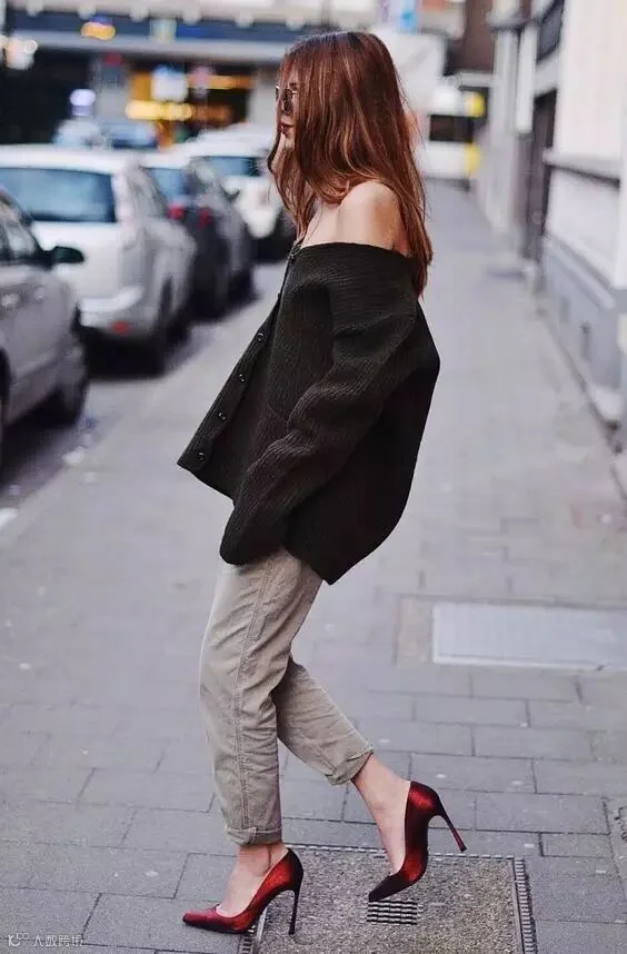 刺绣小礼裙搭配一字带箭头高跟鞋