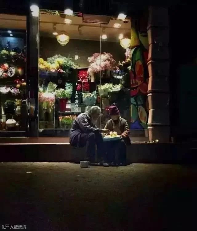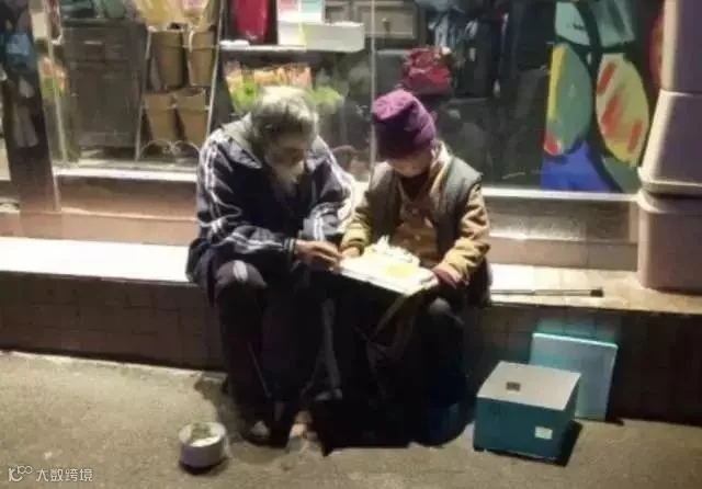 一位长期在街上乞讨的老爷爷,