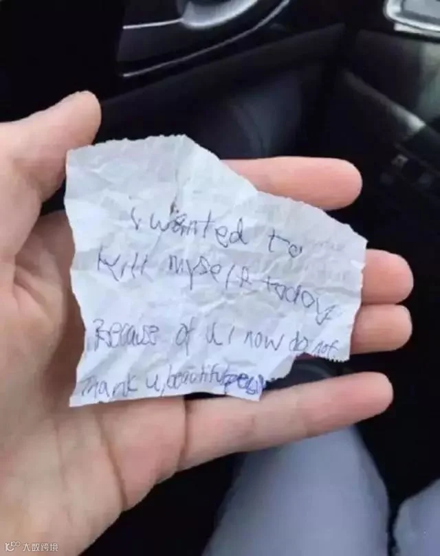 离开前,流浪汉写了张纸条给她: