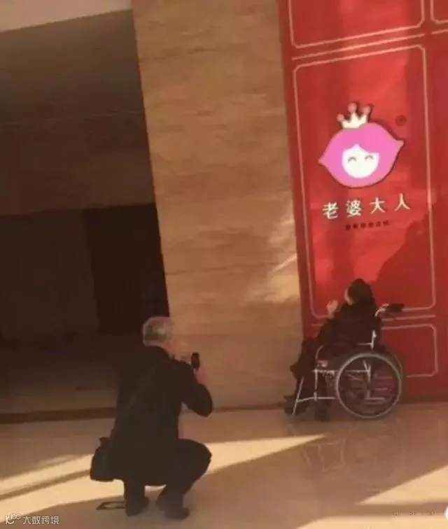 一位老爷爷正在给他的“老婆大人”拍照片。