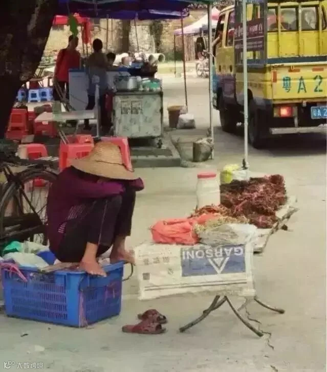 头发泛白的阿姨坐着坐着就睡着了,
