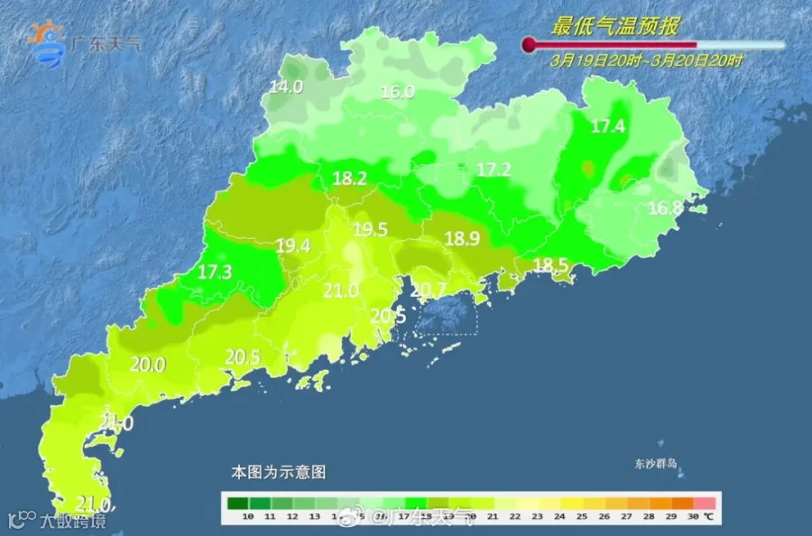 据@广东天气,19-21日,弱冷空气影响,广东云量稍多,气温小幅波动,粤北部分市县有小雨;