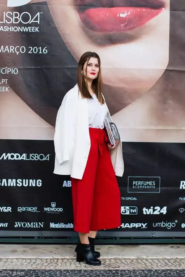 但一定要注意颜色的搭配!红色最好搭配黑白灰等浅色调的衣服和鞋子,如果搭上黄色绿色和其他奇奇怪怪的五彩色,红色就不能算是点睛之笔了。