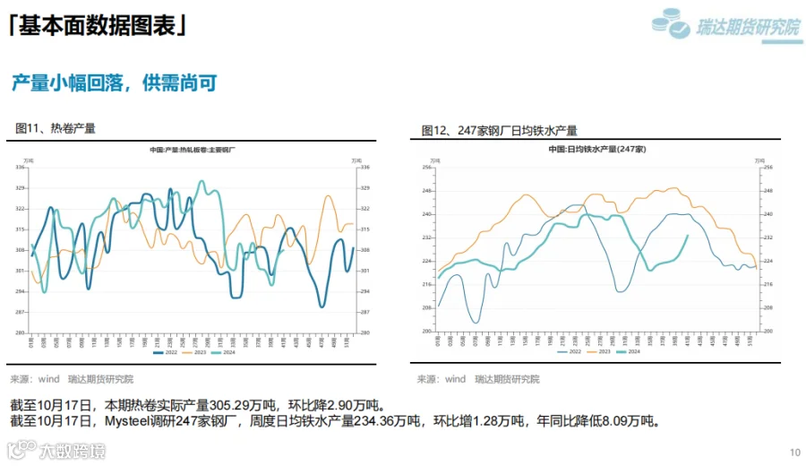 宏观情绪影响基本退去,政策短期难有大的增量措施落地,市场交易回归基本面,趋于理性。本周(10.12-10.18)供需环比尚可,铁水部分回流棒材,供应压力不大,总库存延续下降趋势。
